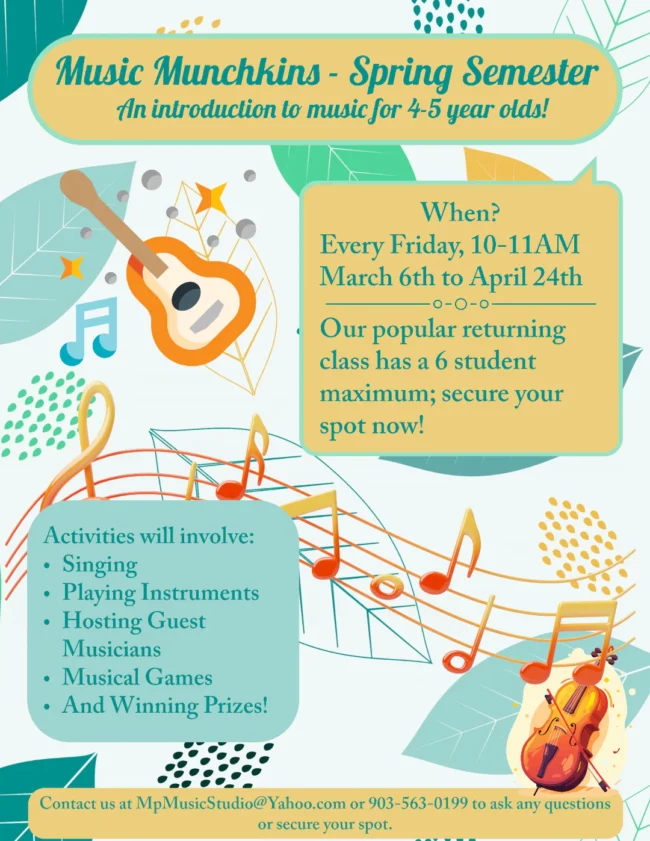 Feel free to call/text us at 903-563-0199 or email us at MPMusicStudio@Yahoo.com about what Holiday scheduling works best for you!
