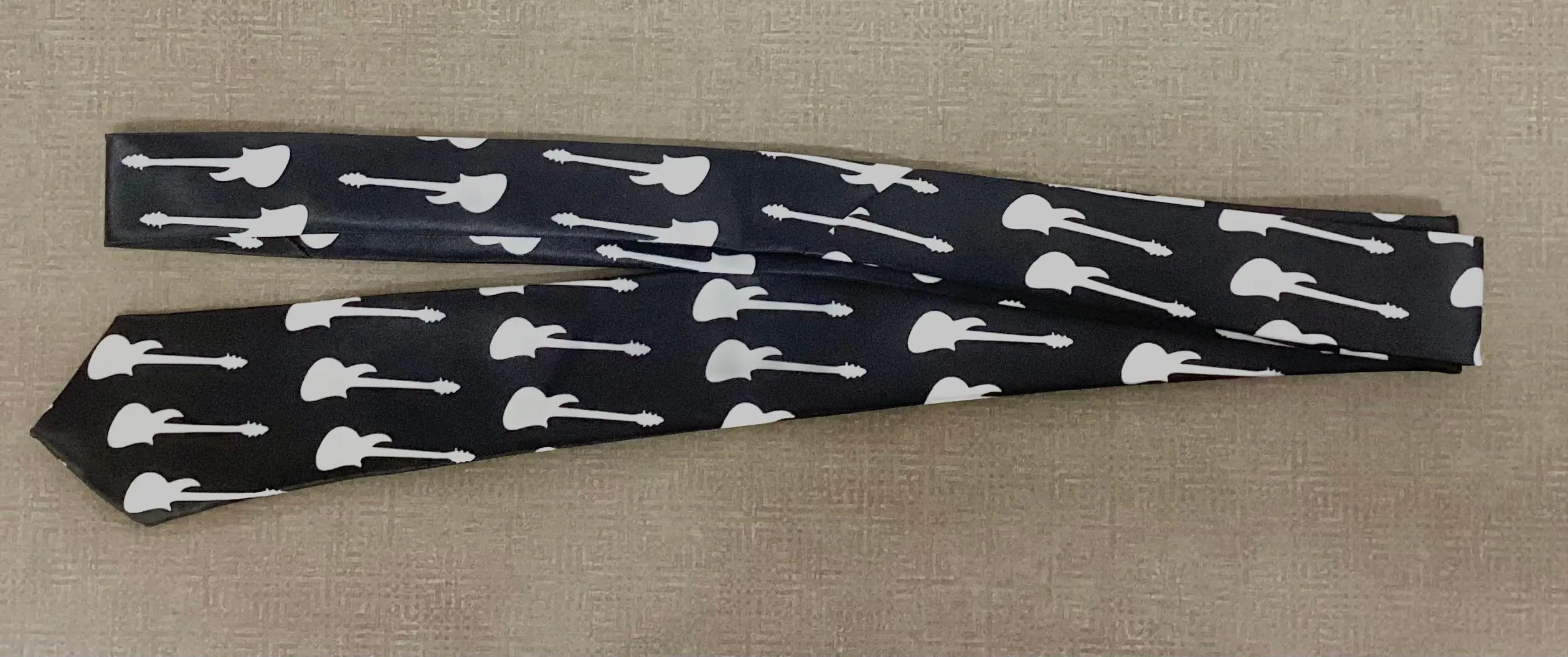 This tie, with its black and white guitar print, is subtle enough to suit just about any occasion while also making a statement.