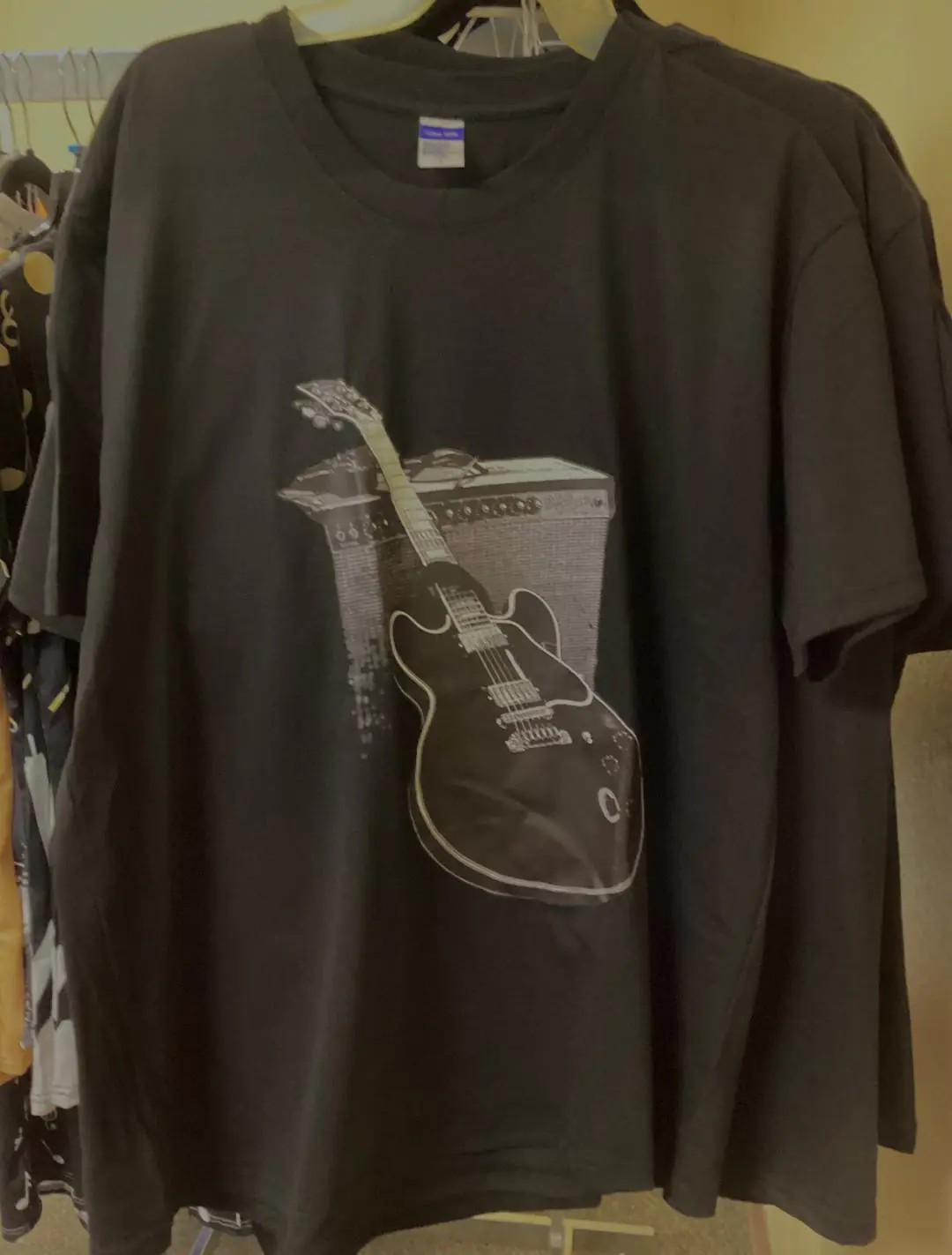 This loosely-fit band-style tee comes with drapey short sleeves and an electric guitar and amp graphic design, reminiscent of a gig setup.