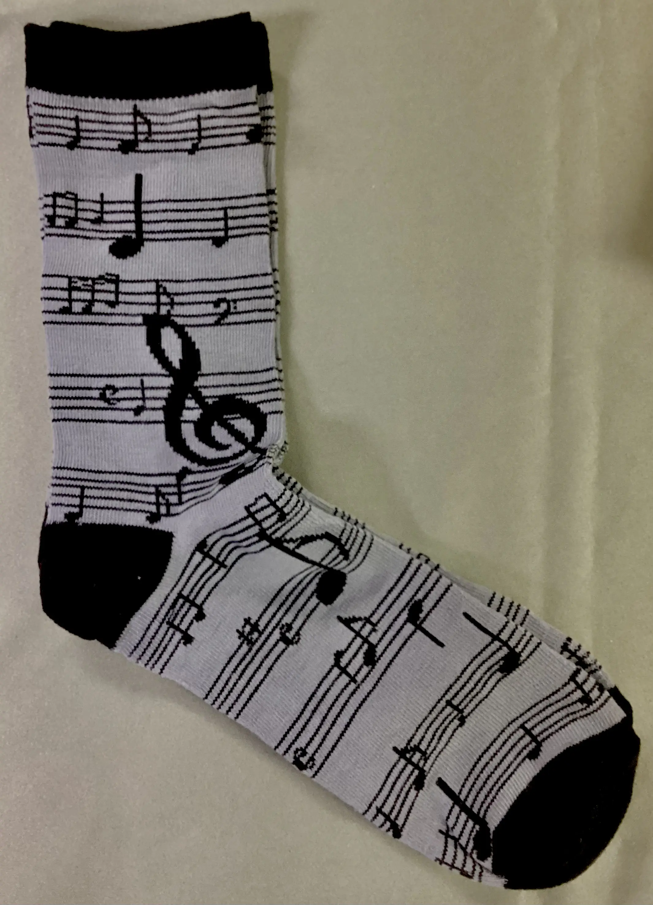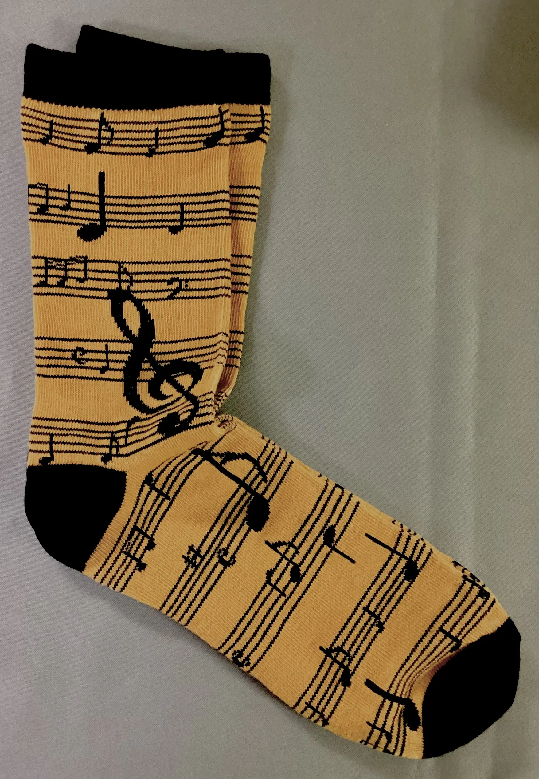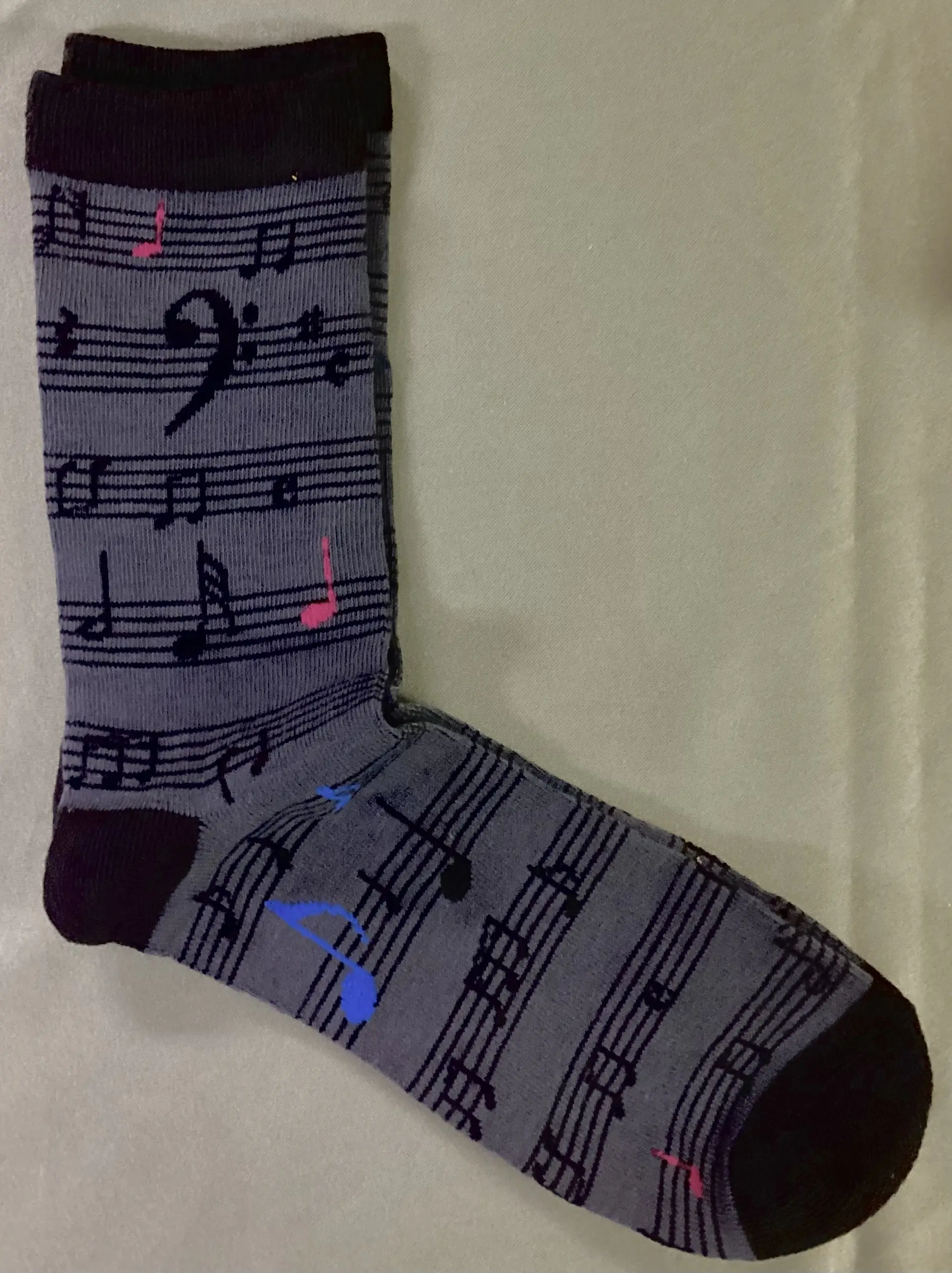 These dress socks are perfect for showing off. With a sheet music print that comes in multiple colors, a black base, and gray cuffs/toes, you’ll be sure to make the classiest sock statement around.