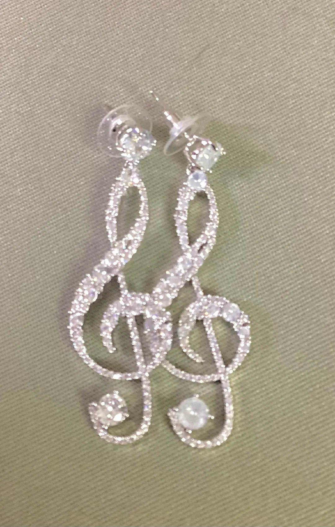 These sparkly treble clef earrings make a bold but classy statement. They’re perfect for special occasions or really, any occasion, With an approximate 2-1/2″ drop, these bold statement pieces won’t be easily missed.